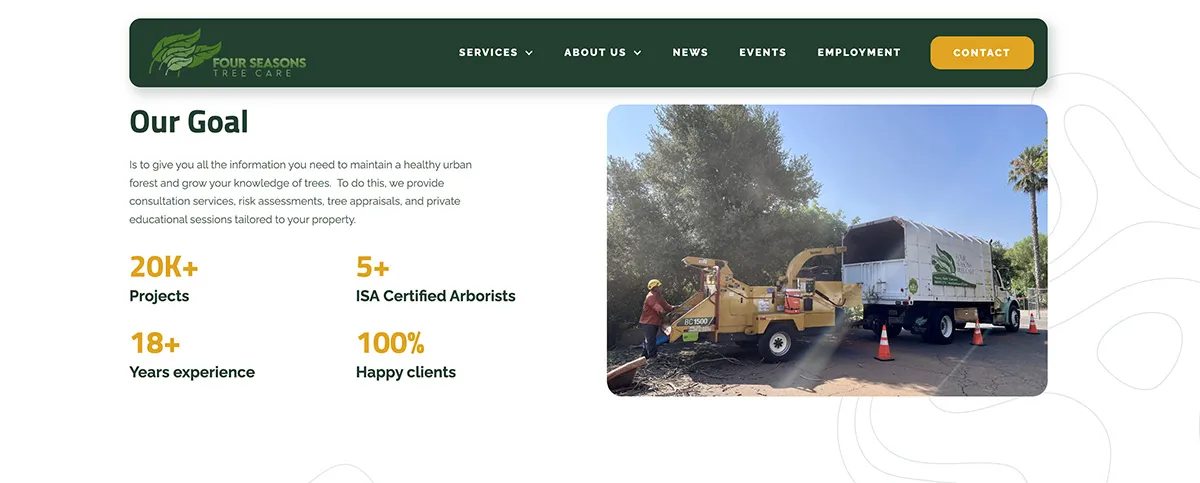 Four Seasons Tree Care, a San Diego leader in tree care, needed a website that truly represented their expertise. Their existing WordPress site was outdated, challenging to maintain, and lacked the functionality to support their business growth. They needed a new platform and a fresh design.